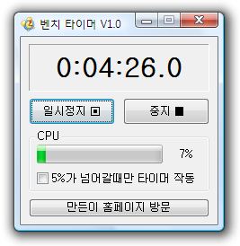 타이머를 사용하기 전에 다른 모든 프로그램을 종료하여서 CPU사용율을 5%이하로 떨어뜨리고 시작하는것을 잊지 말도록 주의하자!